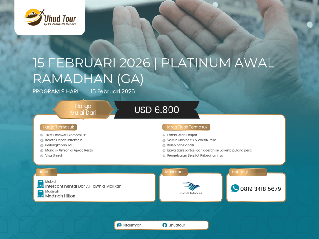 - Dalam hal terdapat kondisi dimana pendaftaran paket Perjalanan Ibadah dan/atau Wisata telah ditutup karena telah memenuhi kuota pendaftaran, dan apabila terdapat permintaan tambahan kuota dari Calon Jemaah, maka pihak Uhud Tour akan melakukan penyesuaian harga dengan menyesuaikan pada kondisi dan ketentuan yang ditetapkan oleh Pihak Ketiga.